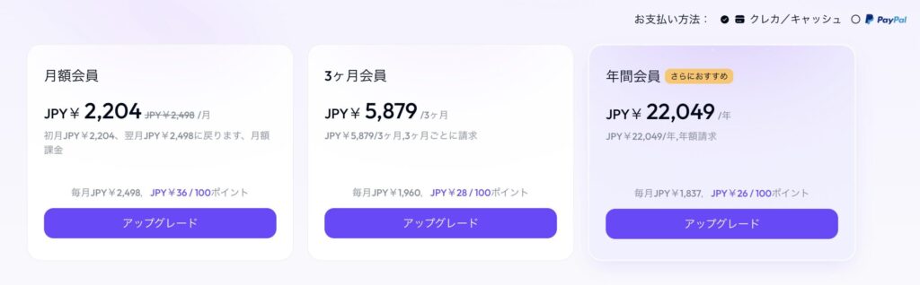 • 月額会員: 月額 2,204円(定価 2,498円からの割引表記あり)